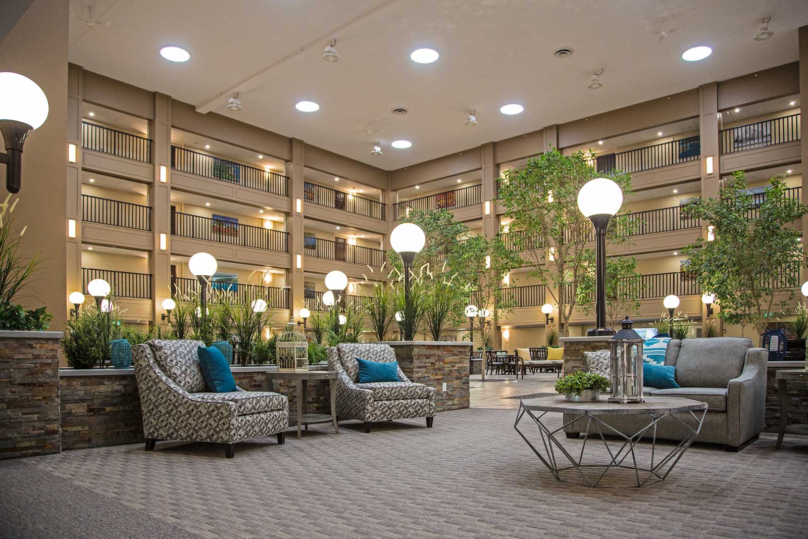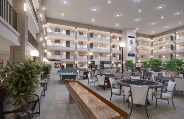 - Atrium entertainment and games area with big screen TV’s, billiards, shuffleboard, Wii games, board games, craft area